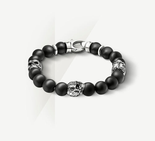 10mm Black Onyx Bead Braceletw/Sterling Silver Skulls