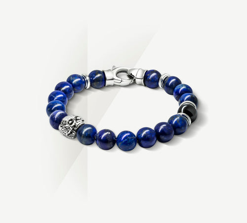 10mm Lapis Bead Braceletw/Sterling Silver / Skull